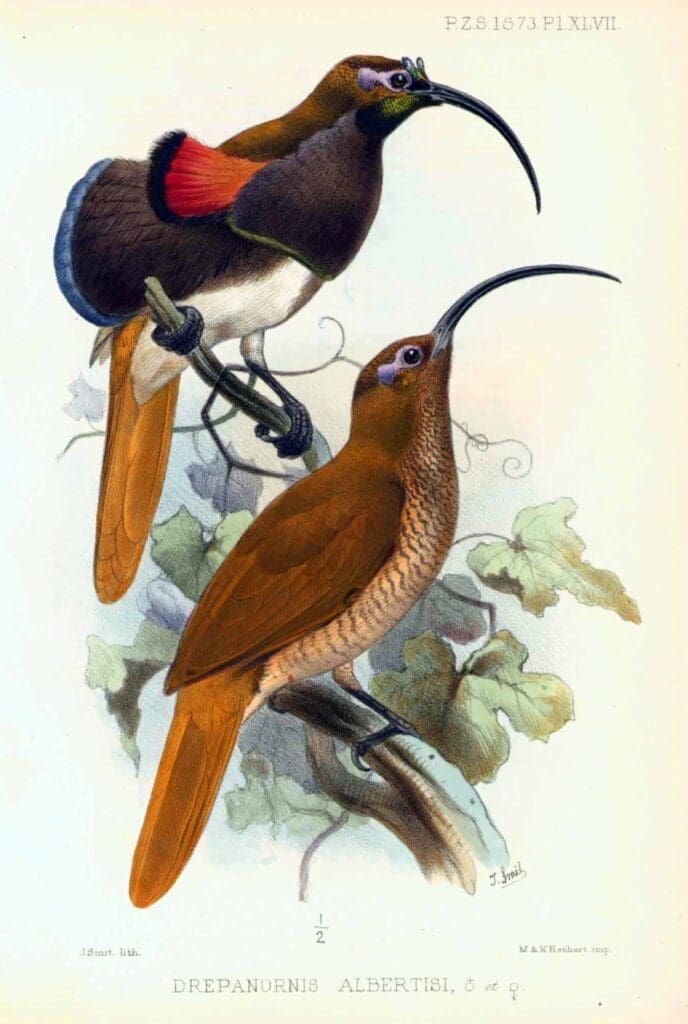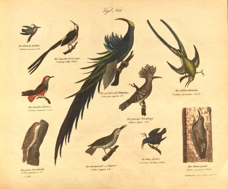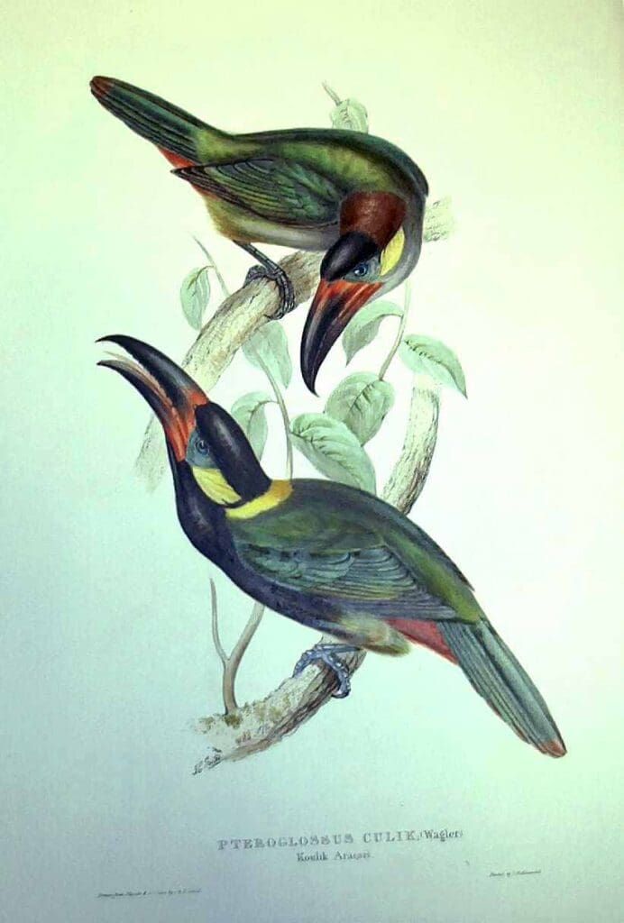 Artists featured in this exhibition include Johns James Audubon, Gorges Cuvier, John Gould, Henrick Gronvold, Frederick Frohawk, John Gerard Keulesmans, Edwin Landseer, Edward Lear, F.P. Nodder, Jean Gabriel Pretre, Robert Ridgeway, Alexander Wilson and Josef Wolf.
